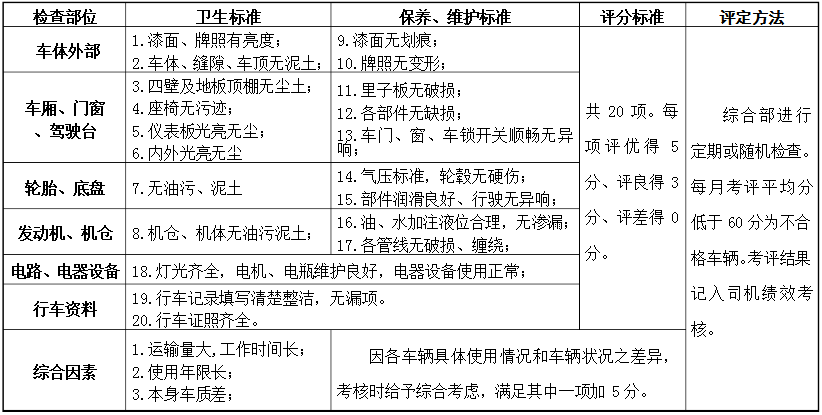車輛車況考評標(biāo)準(zhǔn):